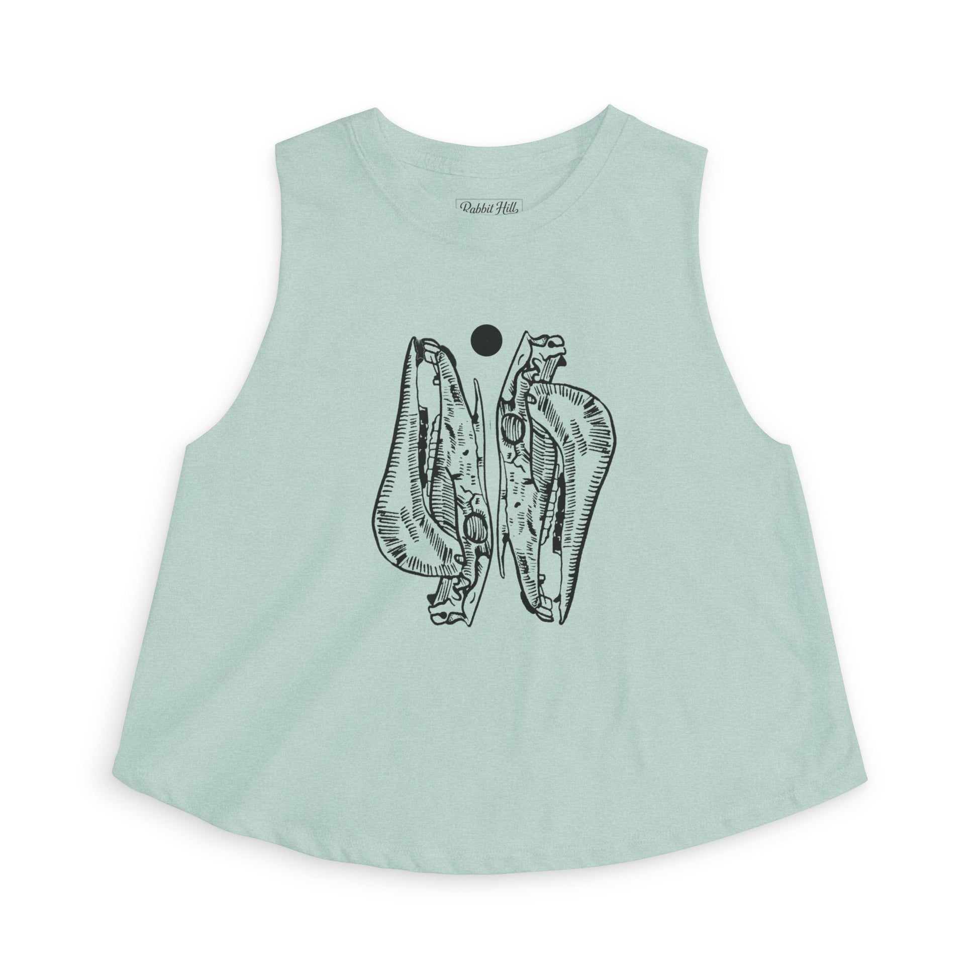 This lightweight crop top lives where city grit meets relaxed summer nights. Coastal bone dance illustration. The relaxed, boxy cut and raw sleeve edges keep the look effortless: roll up high-waisted jeans, layer a bralette underneath, or toss on a linen button-down for sunset gatherings. Breathable fabric and a tear-away label mean comfort that fades into the background while the graphic does the talking.