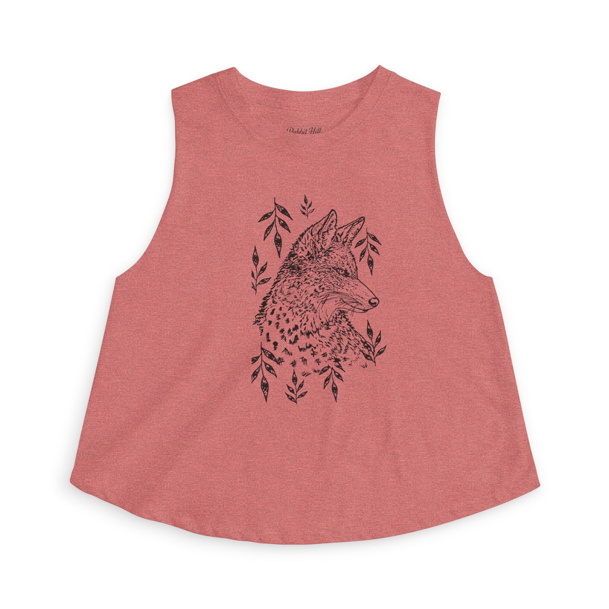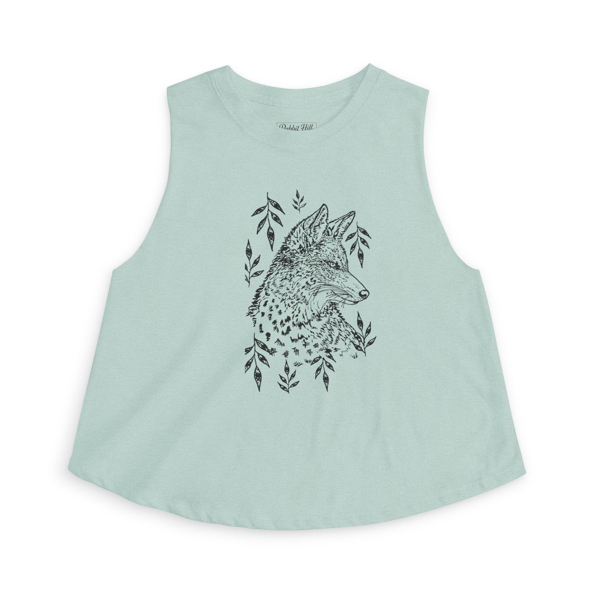 Light as a breeze and quietly confident, this cropped tank brings a touch of wild calm to everyday wear. The soft, extra-light cotton-poly fabric drapes gently, while the raw cut sleeves and relaxed silhouette keep movement easy and effortless. A delicate, hand-drawn coyote illustration with trailing foliage sits at the chest, subtle and artful, like a sketch found in a nature journal. The tear-away label and ribbed collar add thoughtful comfort details so the piece feels as good as it looks.