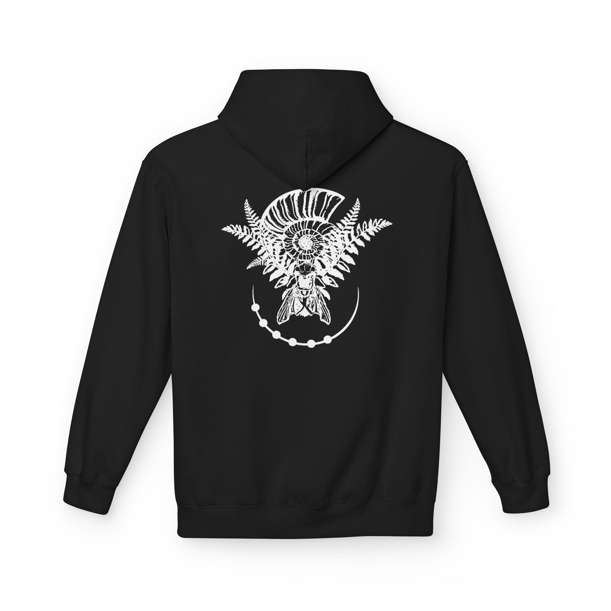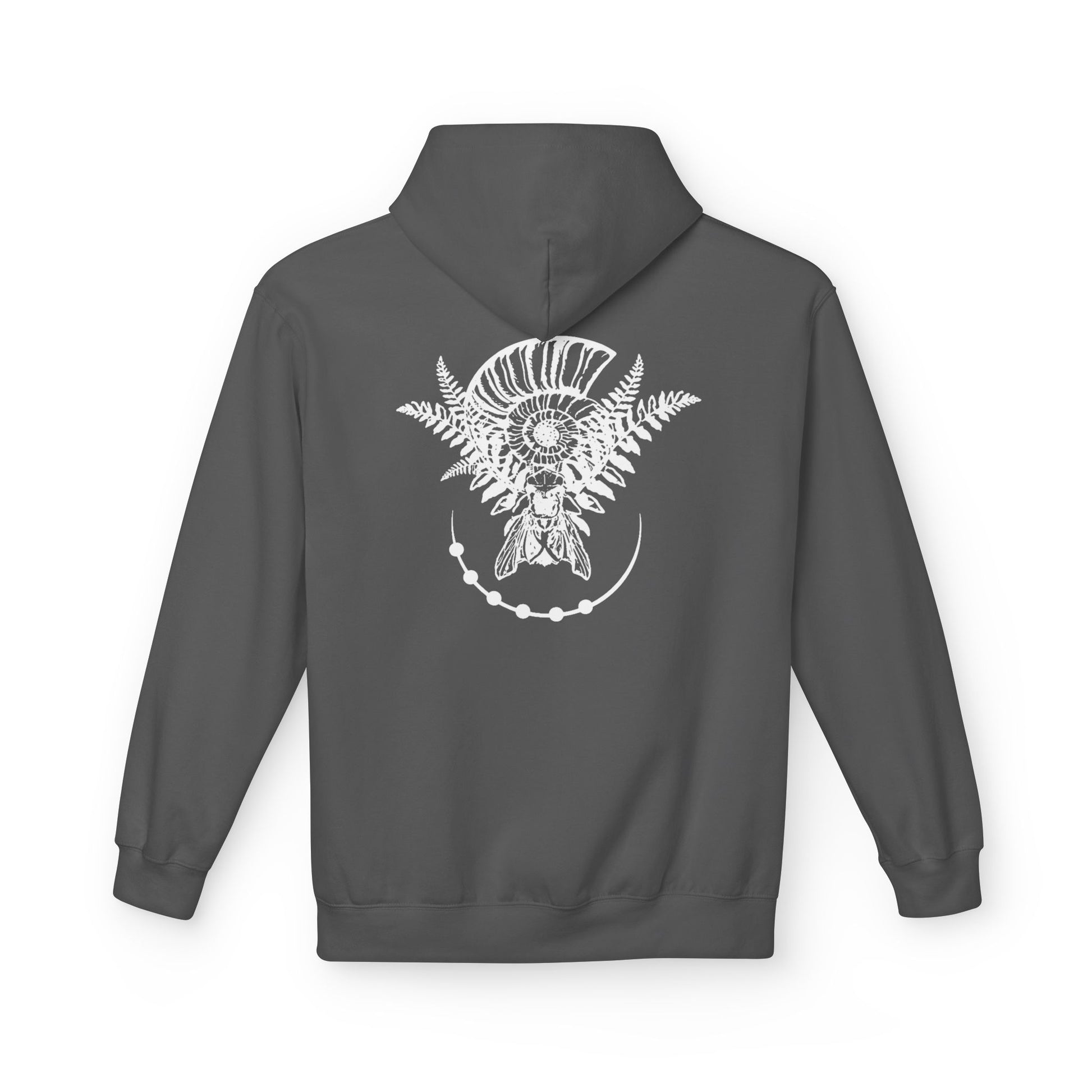 A midweight fleece hoodie, layered ferns and a subtle crescent of stones rendered in soft design. The dropped shoulders and roomy pouch pocket create a relaxed silhouette made for slow walks, early-morning coffees, and evenings around a low-fire circle. The 2-piece jersey-lined hood adds warmth without bulk, and the smooth cotton face keeps prints crisp while the brushed interior holds heat against cooler air. Thoughtfully produced in OEKO-TEX Standard 100 facilities with FLA and WRAP partnerships, this hoodie blends mindful manufacturing with everyday comfort for those who favor practical, grounded style.