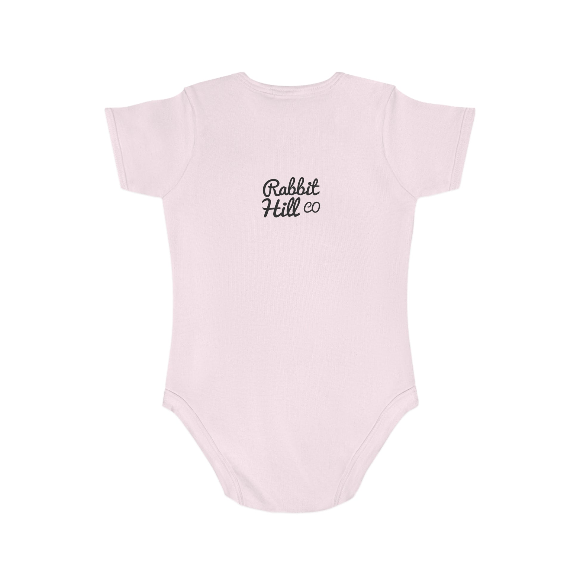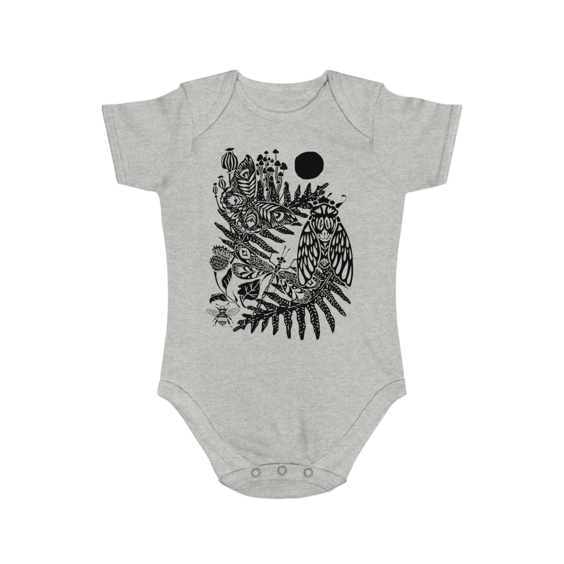 Soft, breathable, and thoughtfully designed — this baby bodysuit pairs gentle comfort with playful, nature-inspired art. The expandable envelope neckline and YKK snap closure make dressing and diaper changes calm and quick, while the medium-weight 100% sustainably sourced cotton keeps little ones cozy through naps.