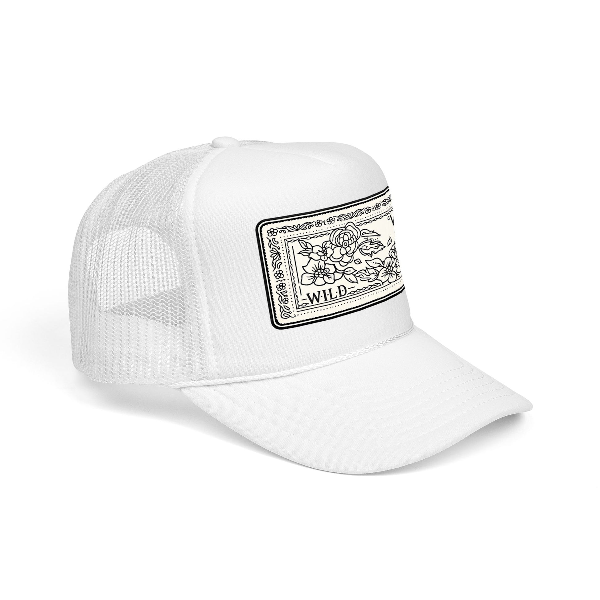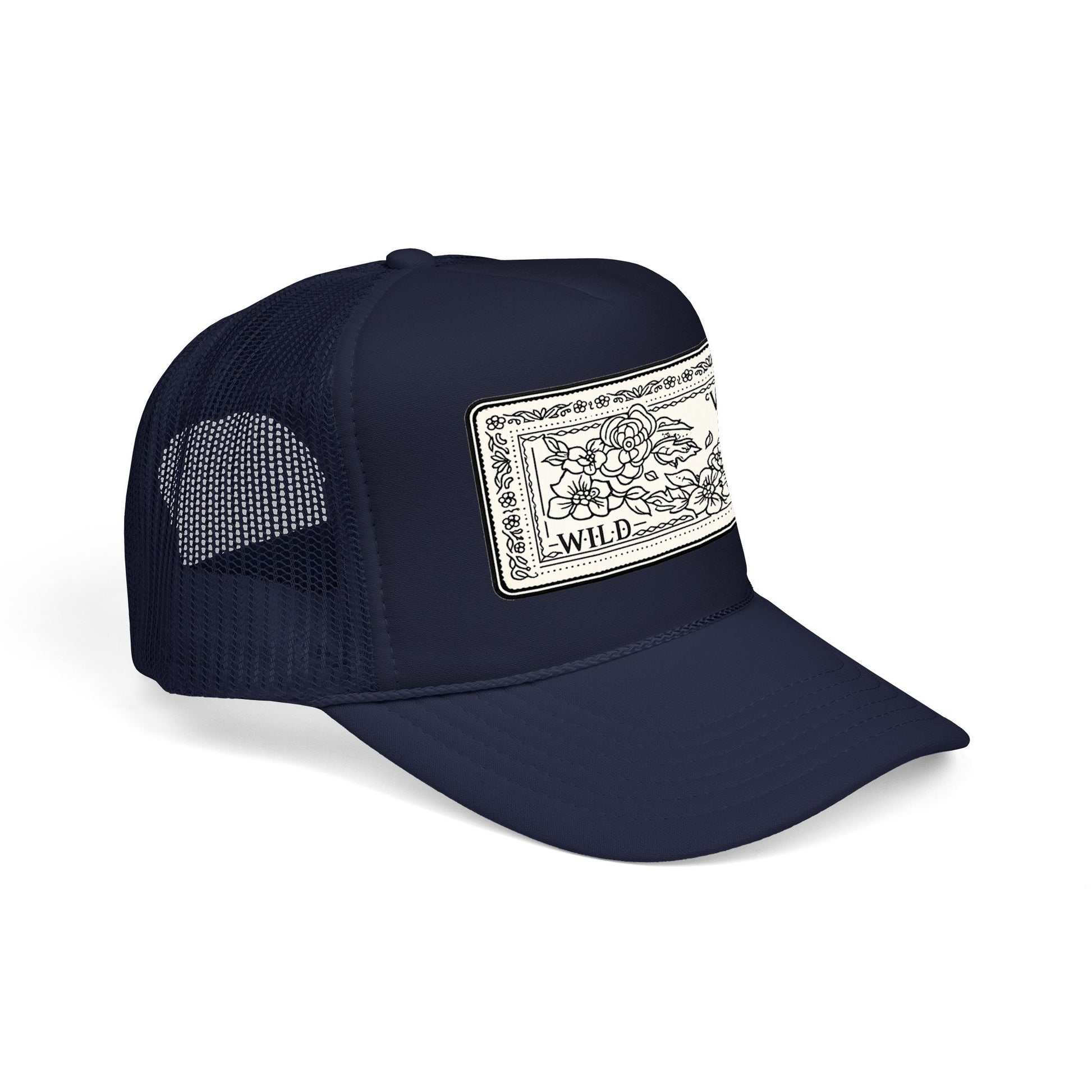 The high-profile, five-panel front showcases a stitched patch-style design of delicate wildflowers and the word “WILD,” giving the hat a hand-made, wanderer’s touch. Mesh panels at the back keep things airy, and substantial foam front and matching undervisor give the cap a clean silhouette that holds its shape, while the adjustable snap ensures a comfortable fit when the day stretches on.